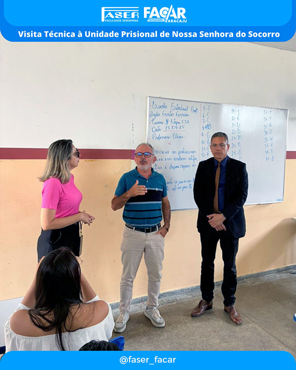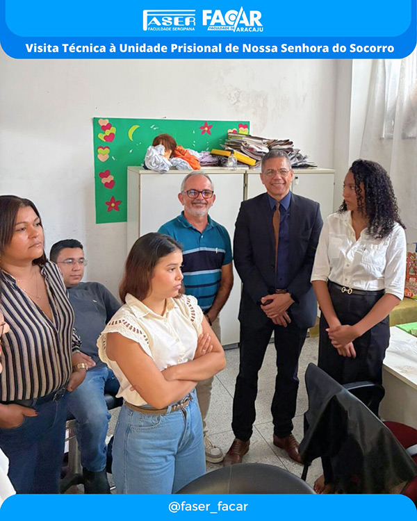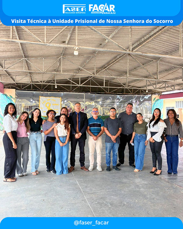 A Faculdade de Aracaju – FACAR promoveu mais uma atividade complementar para os alunos do curso de Direito. Desta vez, os estudantes do 2º, 3º e 4º períodos realizaram uma visita técnica à Unidade Prisional Feminina de Nossa Senhora do Socorro (PREFEM), com foco em Direito Penal, Execução Penal e Direitos Humanos.