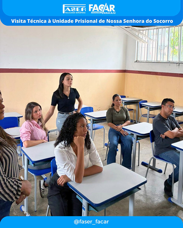 A Faculdade de Aracaju – FACAR promoveu mais uma atividade complementar para os alunos do curso de Direito. Desta vez, os estudantes do 2º, 3º e 4º períodos realizaram uma visita técnica à Unidade Prisional Feminina de Nossa Senhora do Socorro (PREFEM), com foco em Direito Penal, Execução Penal e Direitos Humanos.